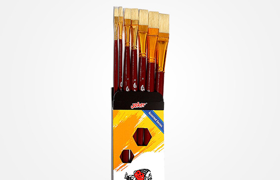 The flat Super (Hog Hair) range of color brushes are available in a wide range of sizes and packs. Long, thick, sturdy bristles along with a durable finish are the mark of a Joker color brush.